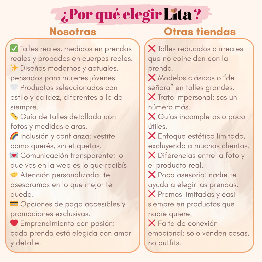 Válido para este producto y todos los de la categoría: Pantalones, Remera, Conjuntos, Chalecos, Blazer, Camisas, Buzos/Sweters.